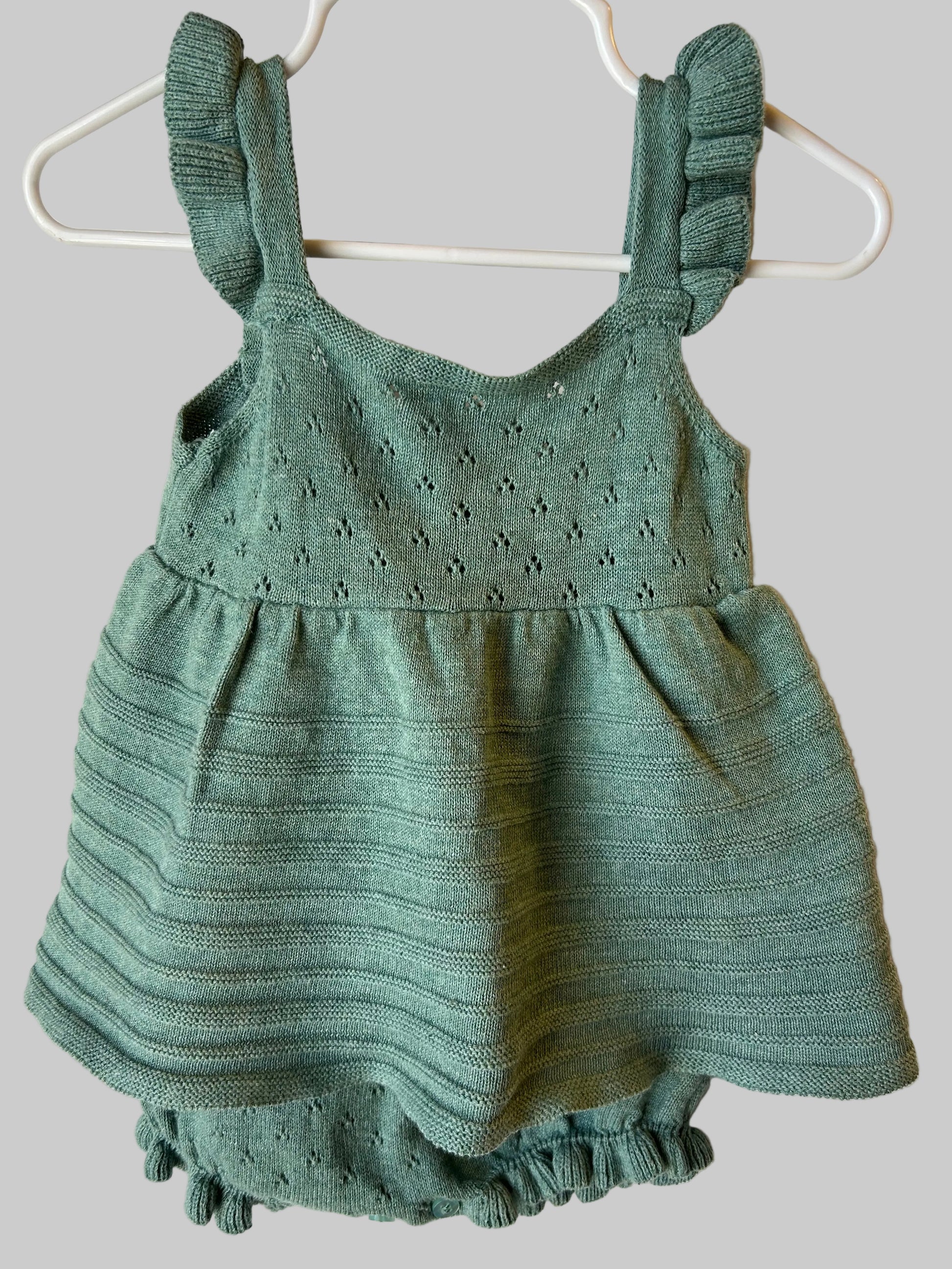 Stitch & Bean Green Pointelle Romper
